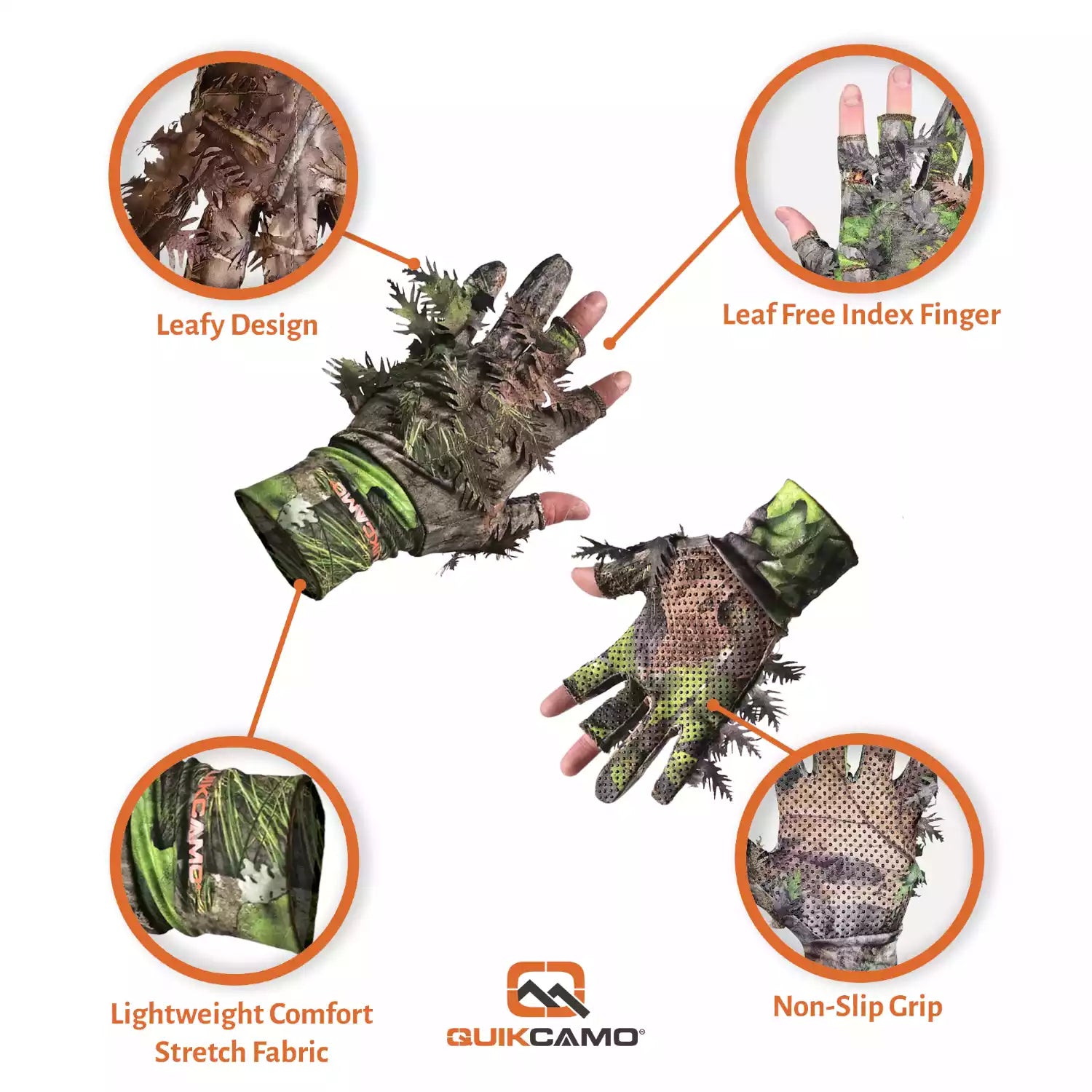 Disappear into the timber with QuikCamo 3D leafy camo hunting gloves designed for close-range concealment and all-day comfort. The “super leafy” leaf-cut outer breaks up your hand outline while the...