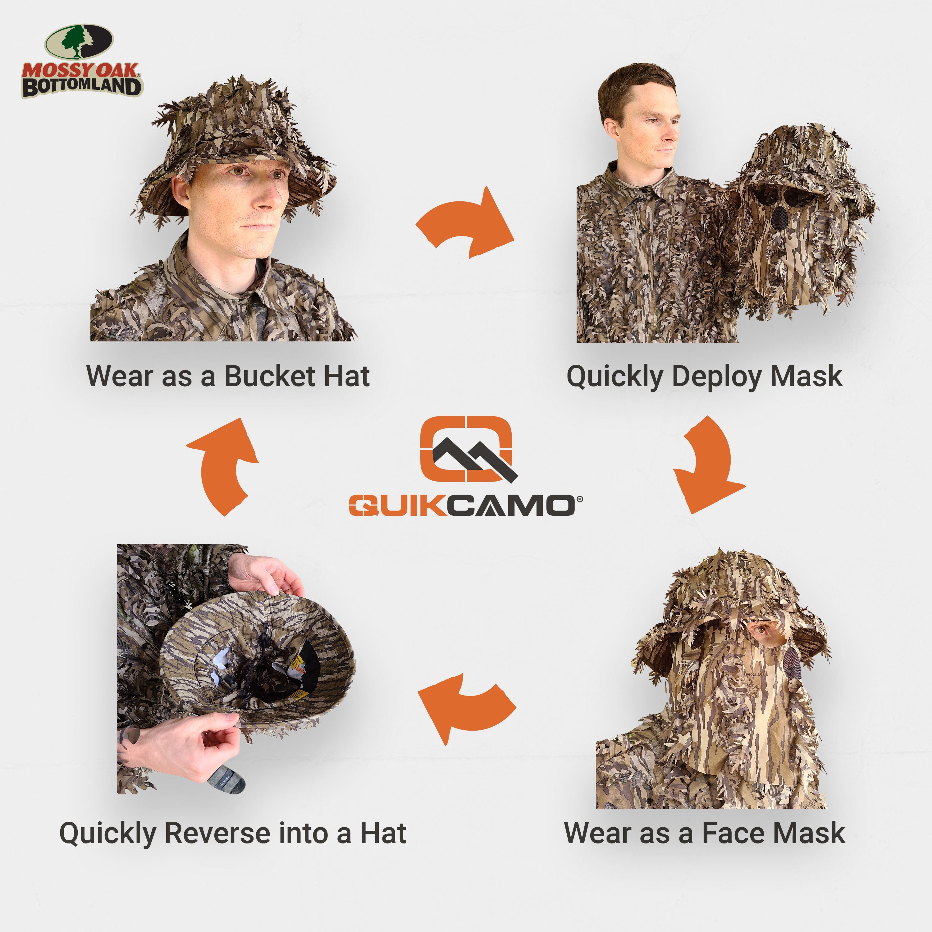 Blend into the woods with this 2-in-1 leafy camouflage bucket hat with integrated face mask from QuikCamo. Built for turkey hunting, deer season, and spring scouting, the 3D leaf-cut outer...